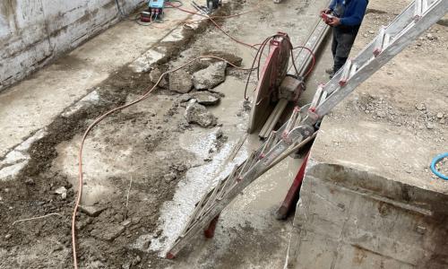 Sägearbeiten im ehemaligen Parkhaus in Ulm